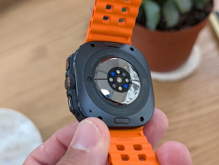 Das Gehäuse der Ultra ist stabiler: mit Titanium Grade 4 Rahmen und 10 ATM Wasserdichte (ATM ist die Einheit für Physikalische Atmosphäre). Die normale Watch7 unterstützt nur 5 ATM. Die Ultra kann von 500 Meter unter Meeresspiegel bis 9000 Meter über Meer betrieben werden – und in Temperaturen von minus 20 bis plus 55 Grad.