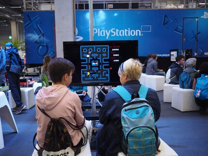 Das Playstation-Logo gehört nicht zum Stand und soll auch keine faule Anspielung sein ;)Zwar ist er nicht annähernd so gross und umfangreich wie der an der Gamescom in Köln, aber die haben auch mal klein angefangen. Die Retroecke in Bern ist überschaubar, bietet aber dennoch einige spannende Klassiker, für die sich der Besuch lohnt – auch wenn einige der alten Spiele wie Pac Man auf einem Emulator laufen.
