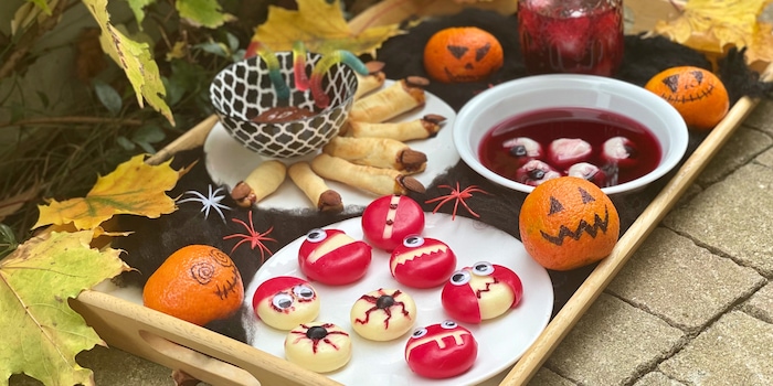 Alle anzeigenMit Halloween-Snacks ist’s wie mit Geburtstagskuchen. Ob du für ein hoch aufwändiges Fondantgebilde Stunden in der Backstube verbringst oder auf einfache Klassiker setzt, ist den Kindern schnuppe – solange das Ergebnis lecker und bunt ist. Hexenfinger aus Teig sind quasi der Mississipi Cake unter den Halloween-Leckerbissen: Du brauchst lediglich einen (Fertig-)Teig nach Wahl. Von Blätter- über Kuchen- bis Mailänderliteig ist alles möglich. Dazu Mandeln und etwas Konfitüre. Fertig. Noch weniger Aufwand bereiten Monstergesichter aus Käse. Du benötigst Babybel, Bastel-Wackelaugen – und etwas Fantasie.