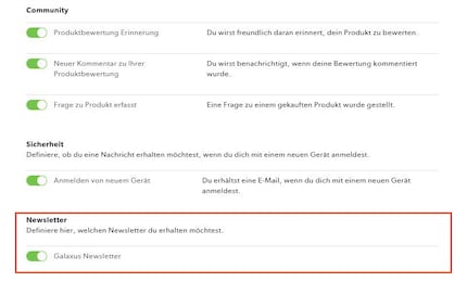 Gehe in dein Profil, klicke auf Benachrichtigungen und lege den Schalter beim Newsletter auf grün um.