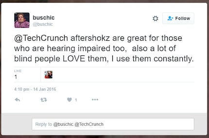 Emily Daigle alias Twitter-Userin @buschic weiss die Antwort. Die Kanadierin ist nicht nur so stark sehgeschwächt, dass sie legal blind ist, sondern auch begeistert von den Aftershokz-Produkten.
