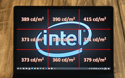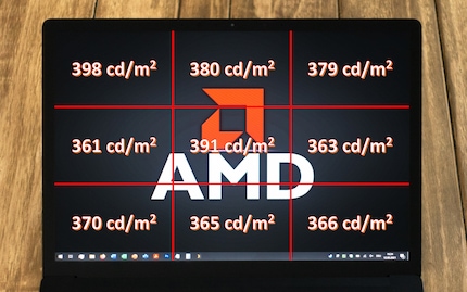 Die Helligkeit beträgt beim AMD-Modell im Schnitt 375 cd/m². Bei Intel sind es 382 cd/m². Das sind beides Werte, mit denen es sich überall im Schatten gut arbeiten lässt. Die größte Abweichung unter den vermessenen Zonen beträgt bei AMD 37 cd/m² (9 Prozent) und bei Intel 55 cd/m² (13 Prozent). Somit ist die Gleichförmigkeit gegeben. Das sind Unterschiede, die von bloßem Auge nur schwer registriert werden können. Mir fällt der Unterschied nur auf, wenn das komplette Display gleichfarbig ausgeleuchtet ist. Nicht aber beim Arbeiten oder Filme schauen.