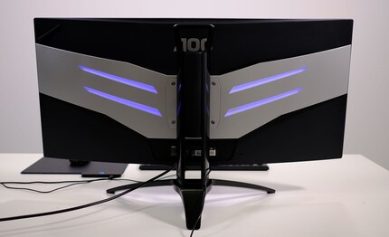 Der Agon lässt sich in alle Richtungen verstellen, nur drehen wie eine Uhr lässt er sich nicht. Die Ausrichtung im Hochformat macht bei einem Ultra-Wide-Monitor, der auch noch gekrümmt ist, wenig Sinn.