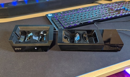 Das Dock des A50 wurde ebenfalls verbessert. So rutschen die Kopfhörer nun leichter in die Ladestation. Beim Vorgänger musst du sie richtig platzieren oder sie laden nicht.