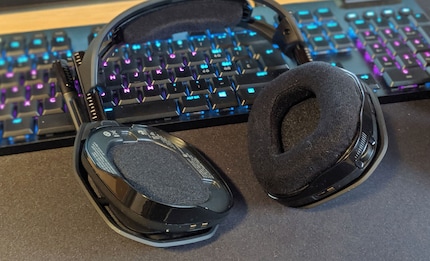 Aber wenn du das Teil auf hast, siehst du eh nichts vom Design. Dort zählt der Tragekomfort und da macht das A50 wieder eine hervorragende Falle. Ich besitze die beiden Vorgänger des Astro A50 und schätze auch dort die angenehm weichen Stoffpolster auf den Ohren. Version vier besitzt einen etwas stärkeren Anpressdruck, ist aber insgesamt sogar etwas angenehmer. Das Astro A40 sitzt mir dagegen viel zu locker und ich habe einen eher grossen Kopf. Ich weiss nicht, ob das daran liegt, dass ich es meist an der Tischkante einhänge und sich dadurch das Kopfband ausgedehnt hat. Fakt ist: Ein bisschen Kopfschütteln reicht und sie fallen mir vom Kopf.