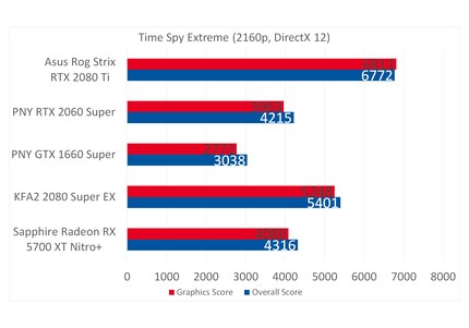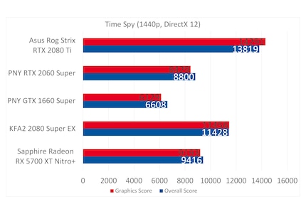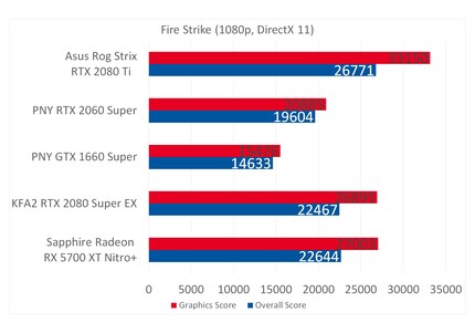 | Test | Asus GeForce ROG Strix RTX 2070S | Asus Rog Strix RTX 2080 TI | PNY RTX 2060 Super | PNY GTX 1660 Super | Sapphire Radeon RX 5700 XT Nitro+ | KFA2 RTX 2080 Super EX |