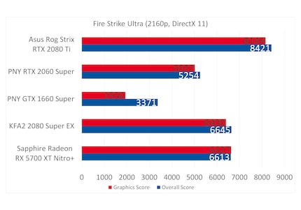 | Test | Asus Rog Strix RTX 2080 TI | PNY RTX 2060 Super | PNY GTX 1660 Super | Sapphire Radeon RX 5700 XT Nitro+ | KFA2 RTX 2080 Super EX |