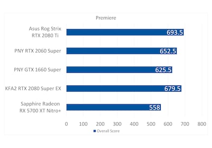 | Scores | Asus GeForce ROG Strix RTX 2070S | Asus Turbo GeForce RTX 2070 Super Evo | Asus Rog Strix 2080 TI | PNY RTX 2060 Super | PNY GTX 1660 Super | Sapphire Radeon RX 5700 XT Nitro+ | KFA2 RTX 2080 Super EX | Referenz-Workstation |