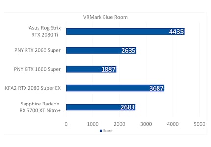 | Scores | Asus GeForce ROG Strix RTX 2070S | Asus Turbo GeForce RTX 2070 Super Evo | Asus Rog Strix RTX 2080 TI | PNY GTX 2060 Super | PNY GTX 1660 Super | Sapphire Radeon RX 5700 XT Nitro+ | KFA2 RTX 2080 Super EX | Referenz-Workstation |