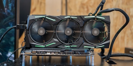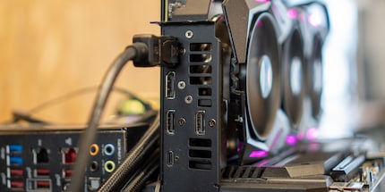 Bei der Konnektivität stehen zwei Mal Display Port 1.4a, zwei Mal HDMI 2.0 und ein Virtual-Link-Anschluss zur Verfügung. Das ist im Wesentlichen ein USB-C-Anschluss, mit dem ein VR-Headset mit nur einem Kabel mit Strom und Daten versorgt werden kann.