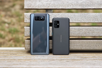 Dass kleiner nicht automatisch schlechter ist, beweist das Super-Amoled-Display des Zenfone 8. Bei seinen 5,9 Zoll kommt es auf eine Auflösung von 2400×1080 Pixel. Es bietet zugleich eine maximale Bildwiederholrate von 120 Hertz. Beim Zenfone 8 Flip reicht es nur für 90 Hertz und die 2400×1080 Pixel verteilen sich hier auf eine Bildschirmdiagonale von 6,67 Zoll. Die Pixeldichte ist aber immer noch hoch genug, sodass du mit bloßem Auge keinen Unterschied bei der Detailgenauigkeit siehst.