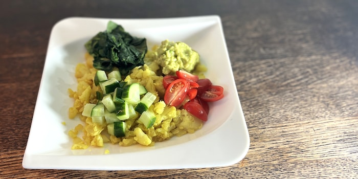Ich wache ohne Hunger auf – erstaunlich. Wunderbar, denke ich, so kann es bleiben. Doch der Kochplan stresst mich und ich brauche eine Lösung. Also beschließe ich, die Grammangaben nicht mehr so genau zu nehmen. Stattdessen erlaube ich mir, Lebensmittel durch passende Alternativen zu ersetzen, um alles einfacher zu machen. Tiefkühlgemüse, -kräuter und -beeren helfen, lange Vorbereitungszeiten zu vermeiden. Mein Tag beginnt mit einem leicht abgewandelten Smoothie-Rezept – so spare ich mir den Gang zum Gemüseladen.
