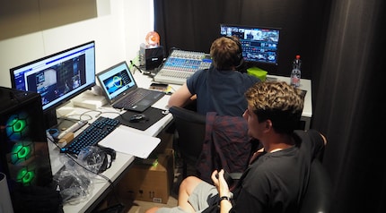 Die beiden Caster Knut0r (links) und Everlast.Hinter dem Vorhang kümmerten sich die Mitarbeiter der eStudios um die Live-Übertragung.Ob der CS:GO Summer Cup auch im nächsten Jahr stattfindet, steht noch offen. Vieles hänge von den Sponsoren ab, sagt Manuel. Mit 1500 Zuschauern über das gesamte Turnier war zumindest das Interesse bei den Gamern definitiv vorhanden.