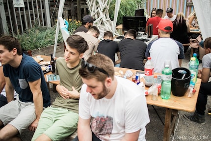 Vor den eStudios gabs ein kleines Public Viewing. Bild: Nhat-Ha.comIm Finale standen somit Swiss Finest und Beyond Your Dreams. Beide Teams gaben noch einmal alles und die Emotionen kochten hoch. Die zehn Spieler boten den Zuschauern beste Unterhaltung. Schliesslich setzte sich Beyond Your Dreams mit einzigartigen Plays durch. Sie holten sich den Gesamtsieg in nur zwei Maps mit einem souveränen 2:0.