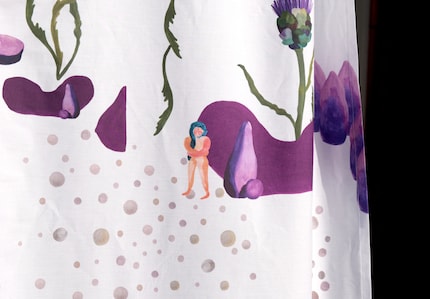 Johanna vom Label Kollektiv Vier hat mit ihren zwei Partnerinnen Mirjam Huwiler und Eva Zuberbühler gerade eine neue Duschvorhang-Serie namens «Mutter Erde» herausgebracht. «Vor allem im Duschvorhang «Fluss» wird das ‘Frau sein’ zelebriert, sagt Johanna.