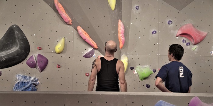 Jeder Boulder besteht aus einer definierten Anzahl von Griffen und Tritten, wobei Start und Ziel gekennzeichnet sind. Die meisten bestehen aus vier bis acht Griffen. Die Distanz an der Wand lässt sich also, wenn es gelingt, relativ schnell überwinden. So gibt es immer wieder Erfolge und damit den notwendigen Motivationsschub, um das nächste Problem konzentriert in Angriff zu nehmen.