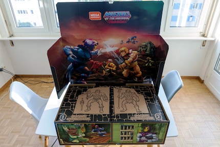 Alle anzeigenNicht nur die schiere Grösse der Verpackung (60cm × 35cm × 20cm) imponiert mir auf den ersten Blick, auch dessen aufwendig illustriertes Artwork. Die Schachtel ist ein Kunstwerk. Ich liebe es jetzt schon. Auf jeder Seite findest du Szenarien aus der Actionfigur-Serie und deren Charakteren auf Castle Grayskull. Auch die vier enthaltenen Kartonschachteln sind anschaulich bedruckt. Darin befinden sich über 50 Plastiksäcke mit 3508 Einzelteilen, aus denen du die Festung und sechs Actionfiguren bauen kannst. He-Man, The Goddess, Sorceress, Man-At-Arms, Skeletor und Beast Man.