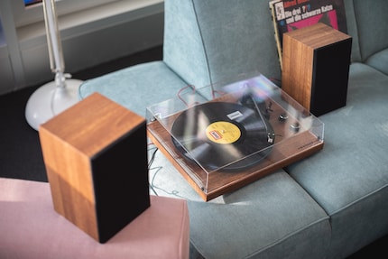 Hast du mal keine Lust auf typischen Platten-Sound oder willst etwas hören, das du nicht auf Vinyl hast, kannst du auch andere Abspielgeräte per Audiokabel als Quelle an den Verstärker des Crosley C62 anschließen oder dein Smartphone per Bluetooth verbinden. An der Soundqualität der Lautsprecher ändert sich dadurch nichts, nur das typische Knacken und Rauschen der Schallplatte fällt weg.