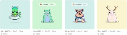 Natürlich können die gezüchteten Kätzchen auch verkauft (versteigert) werden. Dabei werden 3.75 Prozent der Transaktionskosten von den Entwicklern abgezwackt. Ansonsten legt man den Startpreis sowie die Auktionsdauer der zu verkaufenden Kreatur selbst fest. Während der Auktion kann der festgelegte Preis steigen oder sinken. Da die Auktion eine Transaktion in der Blockchain auslöst, kostet auch diese etwas.