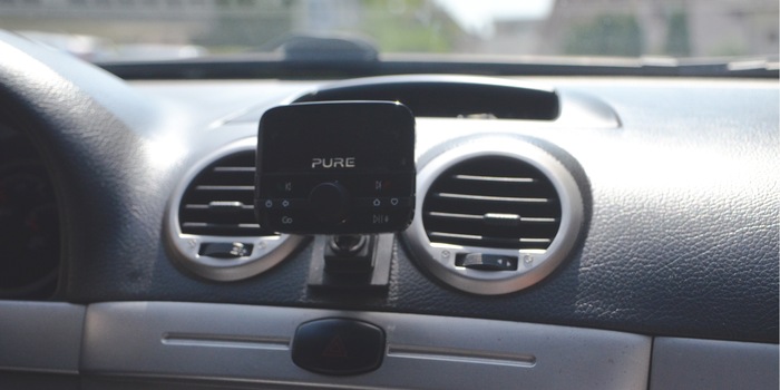Der Pure Highway 600 ist auch das einzige Modell, dann sich an Scheibe und Armatur befestigen lässt. Ich setze den Adapter zwischen die beiden Lüftungen und fühle mich visuell kaum beeinträchtigt. Obwohl es das kleinste Modell im Test ist, wartet es mit den meisten Funktionen auf. Denn zusätzlich zum Radio hören, kannst du dich auch von Spotify berieseln lassen oder über die Freisprecheinrichtung problemlos mit deinen Freunden quatschen. Dafür sind die Knöpfe eher klein und auf holprigen Strassenabschnitten habe ich doch ein paarmal danebengegriffen.