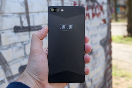 Das Interessanteste beim Carbon 1 MK II ist das Äußere. Und da geht es weniger um das Design, sondern viel mehr ums Material. Rückseite und der seitliche Rahmen sind ein Bauteil. Die Kohlenstofffasern sind so stabil, dass kein Metallrahmen nötig ist. Dadurch wird das Smartphone leichter. Es wiegt nur etwa 125 Gramm. Das ist spürbar weniger als andere Smartphones, die meist zwischen 180 und 230 Gramm wiegen. Das fühlt sich beim Carbon Mobile schon fast zu leicht an.