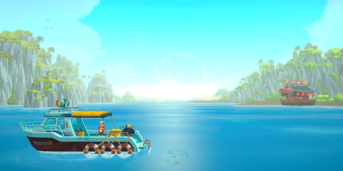 Als wären die normalen Gäste nicht genug, besuchen in regelmässigen Abständen VIPs das Restaurant. Für sie zaubert Bancho besondere Leckerbissen auf den Teller. Für mich bedeutet das, dass ich den Ozean nach neuen ausgefallenen Zutaten absuchen muss. Wird das Gericht schliesslich serviert, werde ich mit einer kurzen Zwischensequenz belohnt. Die Clips sind eine Mischung aus Anime und Samurai-Filmen in Pixeloptik. Sie dauern lediglich ein paar Sekunden, sind aber so sehenswert inszeniert, dass ich sie auch ein zweites oder drittes Mal nicht übersprungen habe. Das gilt auch, wenn ich meine Ausrüstung bei Duff verbessere oder ein neues Menü lerne. Einfach grosse Klasse.