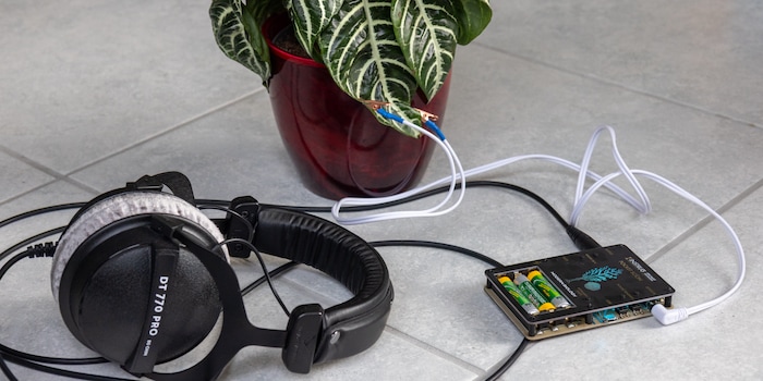Das Beste, was mir bislang mit dem Gerät eingefallen ist: Einen Lautsprecher neben der Pflanze aufzustellen. Ich kann mich dann der Illusion hingeben, dass die Pflanze den lieben langen Tag vor sich hin musiziert und vielleicht sogar mit mir spricht.