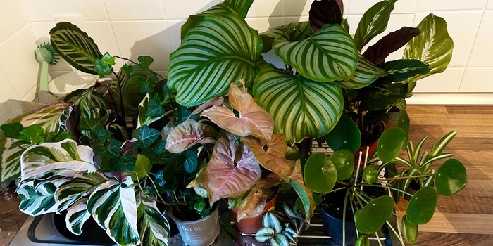 Photosynthese kann aber nicht nur durch Lichtmangel, sondern auch durch eine Staubschicht gefährdet sein. Klingt zwar pingelig, aber es bietet sich an, deine Zimmerpflanzen regelmäßig zu entstauben. Mit der richtigen Musik oder dem Lieblingspodcast ist das durchaus eine entspannende, meditative Tätigkeit, wie ich finde. Du kannst dafür zu einem normalen Mikrofasertuch greifen. Oder du stellst die Pflanzen in die Dusche und braust mit lauwarmem Wasser ab – darüber freuen sie sich. Damit die Erde nicht komplett überschwemmt wird, kannst du ihren Fuß mit einer wasserdichten Tüte abdecken. Lass deine Pflanze nach ihrer Bade-Session ruhig eine Weile in der Dusche stehen und die hohe Luftfeuchtigkeit genießen. Das ist wie ein Spa-Moment für sie.