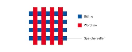 Im Gegensatz zur HDD werden beim NAND-Flash-Speicher Daten elektronisch geschrieben/gelesen. NAND-Flash zeichnet sich durch hohe Speicherdichte und nicht flüchtige Datensicherung. Er tut also das, was die Platter auf der Festplatte tun: Er speichert Daten dauerhaft ab. Das geschieht, indem Spannung erzeugt und gelesen wird.