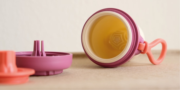 Auf den ersten Blick sieht Emanui wie ein Kaffeebecher zum Mitnehmen aus. Beim Anfassen verrät ihn das Material: Der cremefarbene Hauptkörper, der kleine orangefarbene Deckel und die Schlaufe in Orange bestehen aus medizinischem Silikon. Die restlichen Bestandteile sind aus dem recycelbaren Kunststoff Polypropylen (PP) hergestellt. Alle verwendeten Materialien wurden von der US-Behörde für Lebens- und Arzneimittel, der Food and Drug Administration (FDA) zertifiziert.