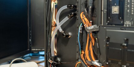 Zuerst verbaue ich alle Komponenten – Mainboard mit Prozessor, Wasserblock, RAM und SSD sowie Radiator, Pumpe, Reservoir und Lüfter – im Gehäuse. So weiss ich, wo ich wieviel Platz habe und vor allem, wie weit ich die neue Rückwand ins Gehäuse versetzen kann. Ich besorge mir im Baumarkt eine fünf Millimeter dicke Acrylglasplatte und schneide sie mit einem Dremel zu. Ich muss eine kleine Aussparung für die Netzteilabdeckung machen und unterhalb des Lüfters etwas mehr Material lassen, damit ich Löcher in die Rückwand bohren kann. In diese Löcher kommen sogenannte Schottverschraubungen (auch: Passthrough-Fittings). Damit kann ich die Verläufe der Wasserkühlung von der Vorder- auf die Rückseite der Innenwand führen.