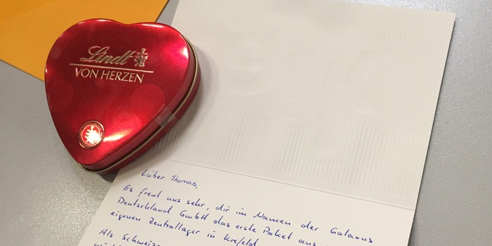 Unser allererster Kunde Thomas hat eine Computermaus bestellt. Unser allererstes Paket haben wir mit besonders viel Liebe bedacht.