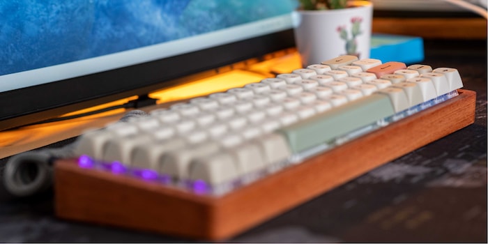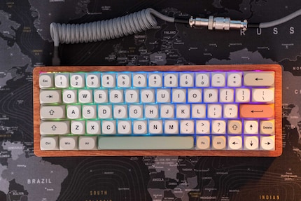 Alle anzeigenSoll’s richtig laut werden, müssen die Switches auch in einem entsprechenden Gehäuse stecken. Alu wäre eine naheliegende Wahl. Ich habe aber bereits Tastaturen mit Alu-Ummantelung, weshalb ich mich für Holz entscheide. Meine Überlegung: Instrumente sind häufig aus Holz und die sind laut. Auf englisch heisst Tastatur schliesslich Keyboard, und das ist ja auch ein Instrument. Ich musiziere, also nerve ich. Meine Wahl fällt auf die GK64X. Eine Einsteiger-DIY-Tastatur, die’s auch in einem Holzgehäuse gibt. Dank Hotswap-Sockeln von Kailh entfällt das Löten.