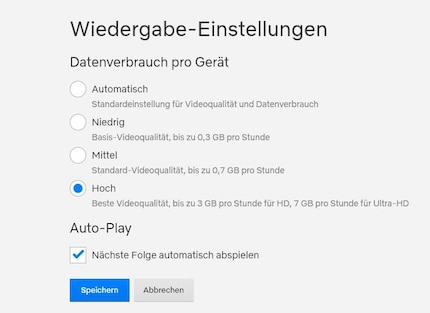 Wenn bei Netflix die Internetverbindung zu langsam ist, schraubt dir das System automatisch die Qualität herunter. Du kannst das zwar in den Einstellungen ausschalten, dann hält die Serie aber einfach an und lädt so lange, bis wieder genug Kapazität da ist. Das ist mir mit dem neuen Salt Abo nie passiert.