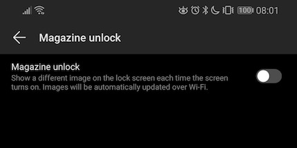 Dein Lockscreen-Hintergrund wird ein Huawei-Standardbild sein und du kannst ihn folglich frei konfigurieren. Denn Magazine Unlock nutzt Bilder aus dem Netz, die stetig seitens Huawei aktualisiert werden, um dir eine möglichst angenehme Bildwelt zu präsentieren.