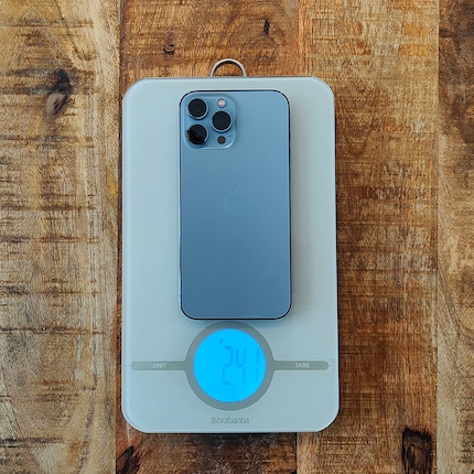 Doch sobald du beide Geräte in der Hand gehalten hast, merkst du, dass das iPhone 13 Pro Max zugenommen hat. Es ist 18 Gramm schwerer als der Vorgänger und wiegt total 241 Gramm, mit SIM-Karte.