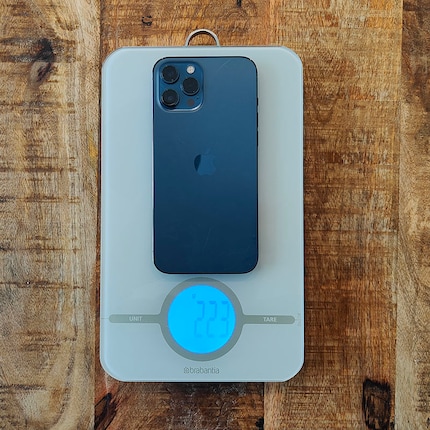 Das führt zu einer komplett neuen Haptik. Die flachen Kanten und dieselbe Bauweise lassen das iPhone 13 Pro Max vertraut wirken. Doch die Gewichtsverteilung ist komplett anders. Nicht nur liegt das Gerät schwerer in der Hand, beim Telefonieren wird dein Arm schneller müde und generell ist mehr Gewicht im oberen Drittel des Geräts. Und dann ist da noch die Tatsache, dass das Smartphone fast ein halbes Pfund wiegt.