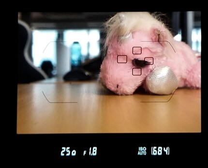 Blick durch den Sucher einer Spiegelreflexkamera. Mehrere AF-Sensoren werden zu einer Gruppe zusammengefasst, damit es ein grösseres Messfeld gibt. Sie könnten aber auch einzeln angesteuert werden, wenn mehr manuelle Präzision gefragt ist. Disclaimer: bei den Recherchen zu diesem Artikel wurden keine Einhörner gequält.Okay, und wie geht das mit dem Feldverschieben?