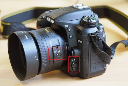 Bei Spiegelreflexkameras von Canon oder Nikon gibt es am Objektiv einen Schalter, der AF/MF oder ähnlich heisst. Natürlich muss dieser auf AF stehen. Einige Spiegelreflexkameras (Nikon) haben zusätzlich noch einen solchen Schalter an der Kamera. Dies ist nur für den Fall gedacht, dass ein Objektiv ohne AF-Schalter verwendet wird.