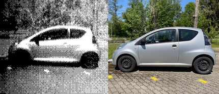 Die Game Boy Camera stammt aus dem Jahr 1998. Ihre Auflösung beträgt 128×112 Pixel, also 0,014 Megapixel, und das nur in Schwarzweiss. Farbtiefe: zwei Bit. Das sind vier Abstufungen pro Pixel: Schwarz, Dunkelgrau, Hellgrau, Weiss. So Details wie Blende oder Fokus lassen sich nicht einstellen.