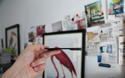Die Farben rot und schwarz stehen ebenfalls zur Auswahl.Dünner geht es kaum: 3,4 Millimeter an der schmalsten und 8,5 Millimeter an der dicksten Stelle.