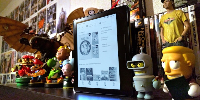 Software-seitig hat sich wenig getan. Die meisten Updates werden ohnehin an alle Kindles ausgeliefert. Die Startseite mit Buchempfehlungen, Leseproben und dergleichen kennt man bereits vom Paperwhite und Voyage. Die praktische Integration des sozialen Lesenetzwerks Goodreads bleibt dafür weiterhin den Amis vorbehalten – ausser man stellt seinen Account auf USA um. Das hat den Nachteil, dass man nicht mehr alle deutschsprachigen Bücher kaufen kann. Auch warte ich immer noch auf Lese-Achievements. Gab es beim Kobo Aura schliesslich auch schon. Damit wäre ich längst Bücherwurm Rang 35.