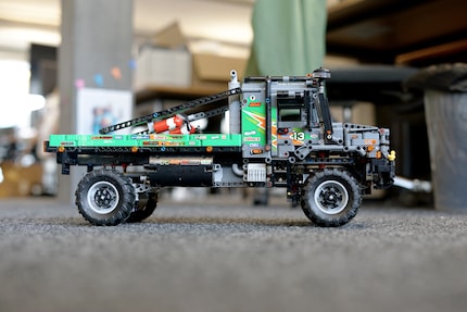 Alle anzeigenDer Mercedes-Benz Zetros LKW ist ein absolutes Ungetüm, das sich abseits von befestigten Strassen wohlfühlt. Steigungen von bis zu 80 Prozent meistert er mühelos. Ein einziger Zylinder des 16-Tonners ist doppelt so gross wie ein ganzer Smart-Motor. Daher schluckt er auch gerne mal einen Liter pro Kilometer. Weit weniger Verbrauch hat die Lego-Technic-Version. Dem genügen sechs AA-Batterien.