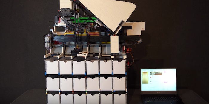 LEGO-Sortiermaschinen haben sich schon einige Tüftler gebaut. Jedoch verlangten diese immer eine gewisse Vorsortierung. Daniel West ging einen Schritt weiter und implementierte in sein Modell eine künstliche Intelligenz, welche alle LEGO-Steine erkennen kann. Für den Bau benötigte West über 10 000 LEGO-Steine, sechs Motoren, ein paar Servos, einen Raspberry Pi, eine Kamera und sein Notebook.