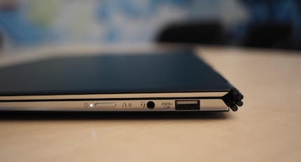 Kein SD-Kartenslot, dafür USB 3.0.Apropos Aufladen. Dank USB-C-Ladeanschluss könnt ihr den Laptop auch mit anderen Ladegeräten benutzen. Allerdings sollte das Gerät mindestens 2.0 oder mehr Ampere besitzen. Bei den normalen 1.5-Ampere-Netzteilen, die heutigen Smartphones beiliegen, macht der Laptop keinen Wank. Mit dem 2.5-Ampere-Teil meines Kollegen Dominik fängt der Ladebalken langsam an zu wachsen. Für die gleichzeitige Nutzung des Geräts reicht die Leistung hingegen immer noch nicht.