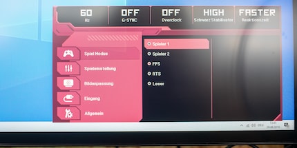 Nebst den üblichen Verdächtigen wie Helligkeit/Kontrast, Kopfhörerlautstärke, Gamma, RGB und Farbtemperatur lässt sich der Monitor auf 120 Hz übertakten. Die Option muss zuerst im OSD aktiviert werden. Das OSD erreichst du durch Druck auf den Joystick, der sich gut versteckt in der Mitte des unteren Bildschirmrands befindet.