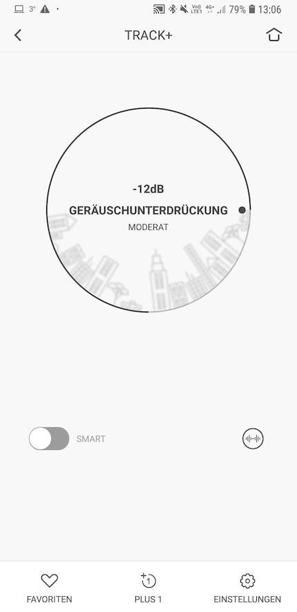 Bis anhin hatte ich immer etwas Mühe mit Kopfhörern, die mit viel Noise Cancelling arbeiten. Wie etwa beim Sony WH-1000XM3 bei dem es mir vorkam, als würde der Sound davonschwimmen. Beim Track+ ist das ganz anders. Auch auf der höchsten der vier Stufen finde ich den Sound gleichbleibend angenehm. Dass sich das Noise Cancelling auf verschiedenen Stufen anpassen lässt, macht besonders Freude. Jedoch kann das Libratones Vorgängerkopfhörer, der kabelgebundene Q Adapt In-Ear, auch schon. In der App zeigt dir Libratone an, was die vier Stufen bedeuten: