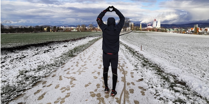 Kaum bin ich unterwegs, bricht ein kleiner Wintersturm los. Einer der Gründe, warum ich das Laufen liebe: die Elemente. Ich bin Stadtmensch, verbringe meine Zeit im Grossraumbüro oder aktuell im Homeoffice. Also drinnen. Sitzend. Draussen bin ich Jäger und Sammler. Ich renne, also bin ich. Spüre mich und die Welt um mich herum. Kälte und Schnee im Winter. Sonne, Hitze und Schweiss im Sommer.