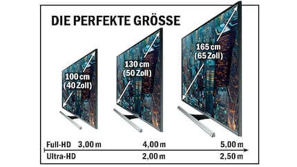 Vergesst, was eure Eltern früher gesagt haben: «Sitzt nicht zu nahe vor den Fernseher. Davon bekommt ihr viereckige Augen». Mit den heutigen Auflösungen soll man sogar näher sitzen. Denn wer zu weit weg vom Fernseher hockt, der sieht selbst bei einem alten Röhrenbildfernseher zu einem 4K-Flachbildschirm kaum einen Unterschied. Praktisch, wenn man sich keinen neuen Fernseher anschaffen will, aber Kinofeeling kommt dabei bestimmt nicht auf. Ehrlich: Ihr könnt dank der sehr hohen Pixeldichte viel näher am Fernseher hocken, ohne dass ihr einzelne Pixel ausmachen könnt.