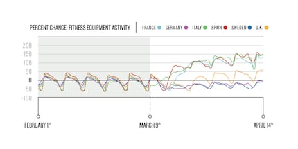Italien verzeichnet einen 105-prozentigen Anstieg der Fitness-Aktivitäten, wenn man die Zeiträume vor und nach der Ausgangssperre vergleiche. Nutzer in Frankreich, Spanien und Grossbritannien trainierten ebenfalls mehr mit einem Anstieg von 80, 93 beziehungsweise 8 Prozent. All das deute darauf hin, dass selbst diejenigen, die in Ländern mit sehr weitreichenden Massnahmen lebten, trotzdem Wege fänden, sich zu bewegen.